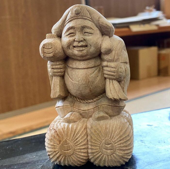 今まで作ったものを見てみると、にっこりと優しげにほほ笑む顔が印象的な、七福神の布袋尊や…