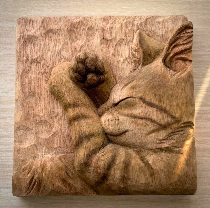 肉球の立体感が見事に再現された、猫が気持ちよさそうに寝ている作品など、どれも温かみを感じられます。