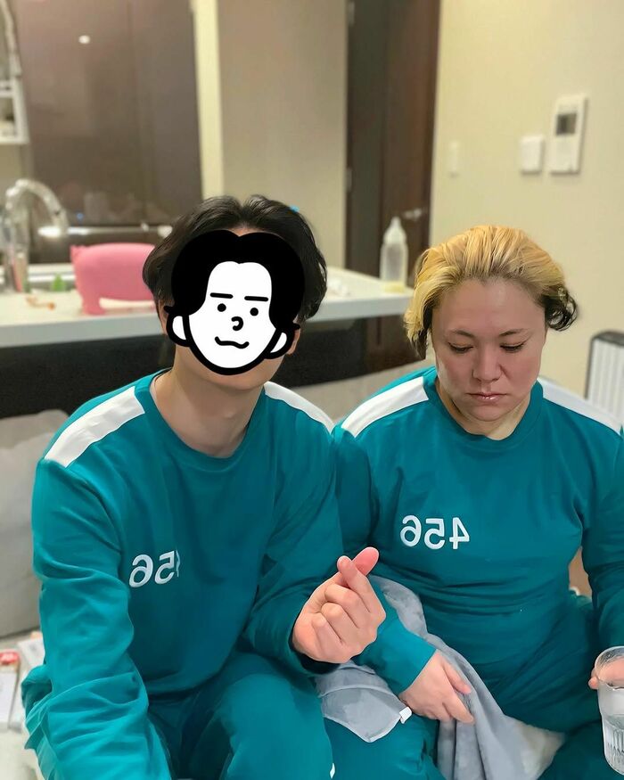 お風呂あがりに夫とともにNetflixドラマ『イカゲーム』のコスプレ姿を楽しんだ様子を公開すると、ファンから多くの反響が寄せられました。