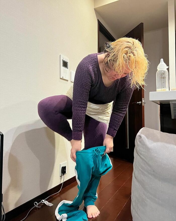 続けて、「着てみると意外としっくりきてしまいました。」というコメントとともにバッチリジャージを着こなした自身の姿も。ブリーチを繰り返した金髪に、緑のジャージ、そして全てを悟ったような無表情でカメラを見つめる様子はどう見ても“強キャラ感”…!