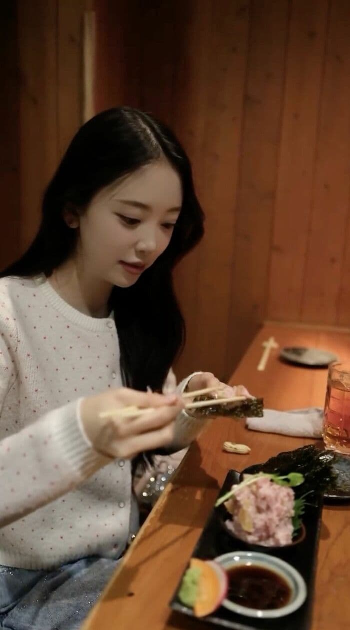 さらに、「何食べても美味しいからついつい食べすぎちゃう」と、おいしそうに食べる堀さんの様子を収めた動画も公開!ノリの上に、まぐろのたたきと思われるものをのせ…