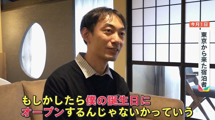 東京から来たという宿泊客の男性。なんと、奇跡的に自身の誕生日とオープンの日が同じだったといいます。