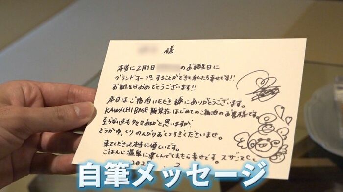 男性には、スザンヌさんから自筆のお祝いメッセージがプレゼントされました。