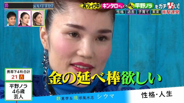 さらにシウマさんが「40歳から上手に“逃げられる”特徴がある」と占うと、ノラさんは「やったぜ!もっと上手く(苦況から)逃げられたらいいなって思う」と大喜び。