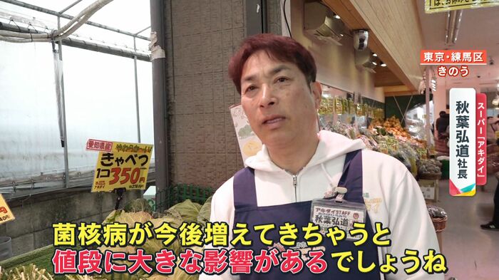 菌核病が今後増えてきちゃうと、値段に大きな影響があるでしょうね。今すぐじゃないですけども、春キャベツが出る頃、だいたい3月。最悪また500円とかそういう状況になってくる可能性はあると思いますね。