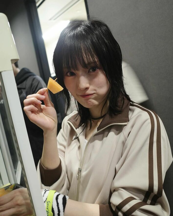 オフショットでは、オシャレなジャージスタイルで、メロンのようなものをモグモグする様子が収められています。カメラに向かってうれしそうな表情を見せており、リラックスしているのが分かります。