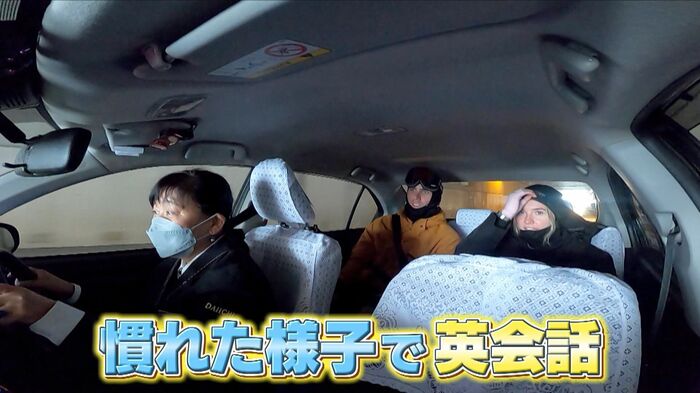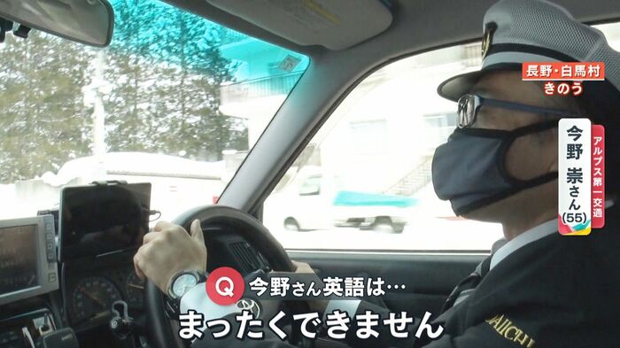 タクシードライバーは、流ちょうな英語で海外から来たスキー客に対応。