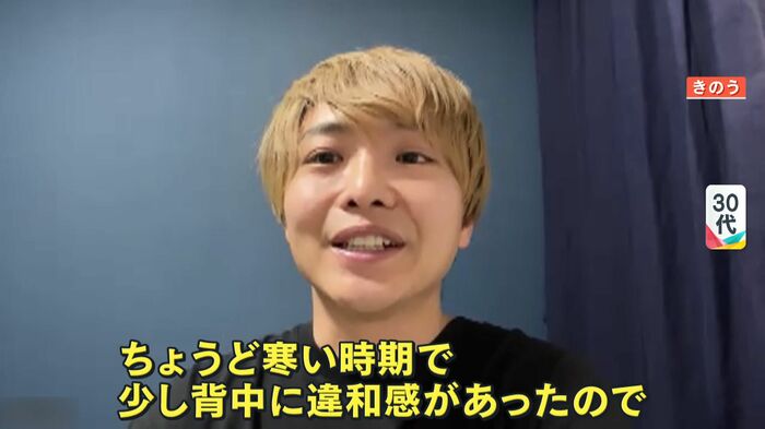 (仕事の休憩中に)ちょうど寒い時期で少し背中に違和感があったので、温めた方がいいと思ってストーブ前で土下座みたいな感じのスタイルで休憩していたんですけどそこから10分ほど動けなくなってその格好で。気温が急に低くなったので、それが影響しているのかなみたいな感じで言われましたね。