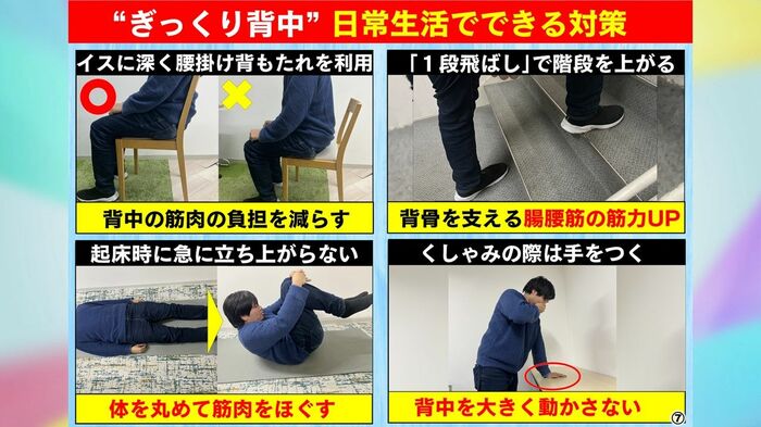 「ぎっくり背中」にならないためには日常生活の中でも対策ができるといいます。