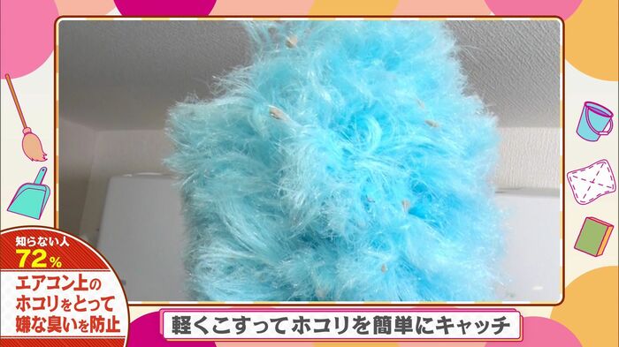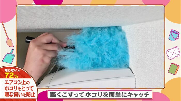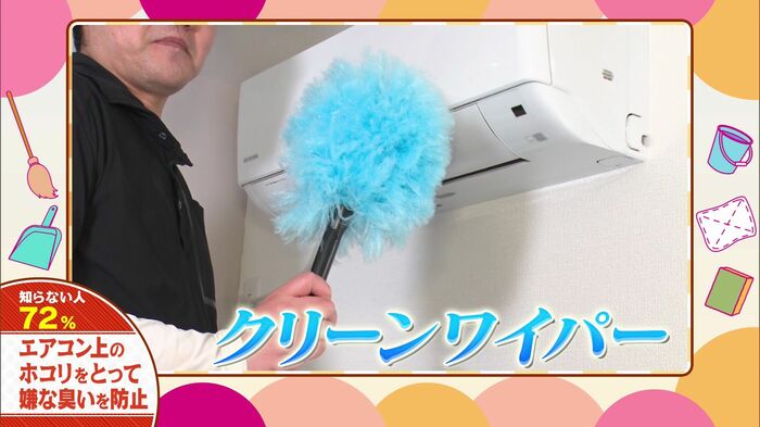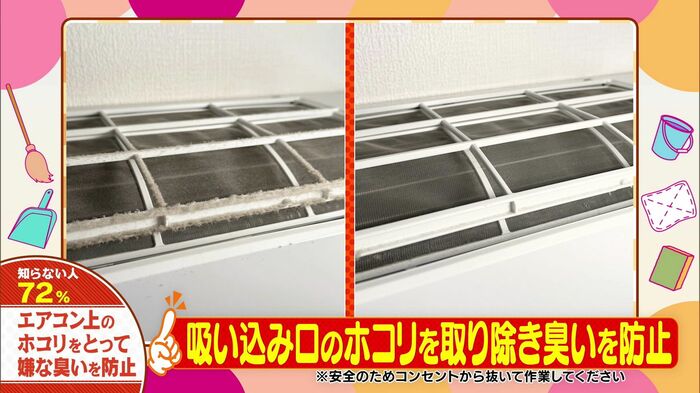 まず一つ目は、72%の人が知らなかったという掃除術、「エアコン上のホコリを取ってイヤな臭いを防止」すること!