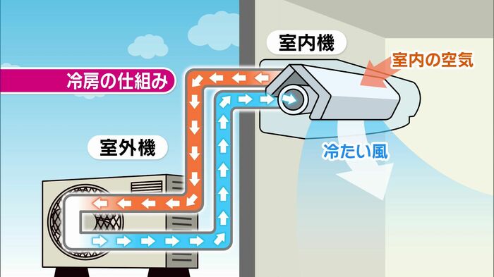 吸い込んだ部屋の空気は、急速に冷やされた「熱交換器」を通ってエアコンから吐き出されます。