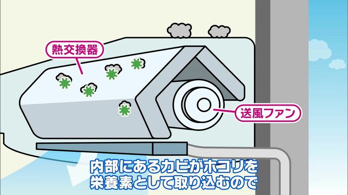 大川さんによると、冬は比較的乾燥しているため、乾燥した空気にホコリがのって、エアコンの上部に吸い込まれていくことでホコリがたまることが多いといいます。