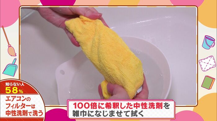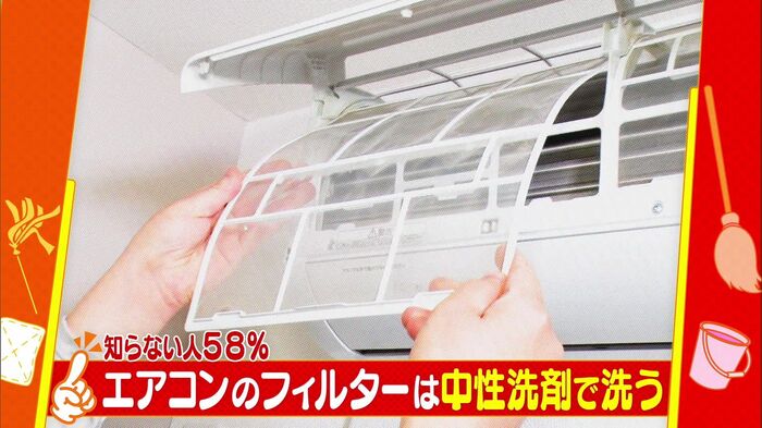 そこでオススメなのが、58%の人が知らなかったという「エアコンのフィルターは中性洗剤で洗う」!