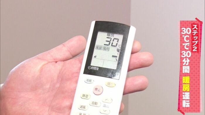 次に、暖房にして温度を30℃に設定。これも30分間運転するだけ!