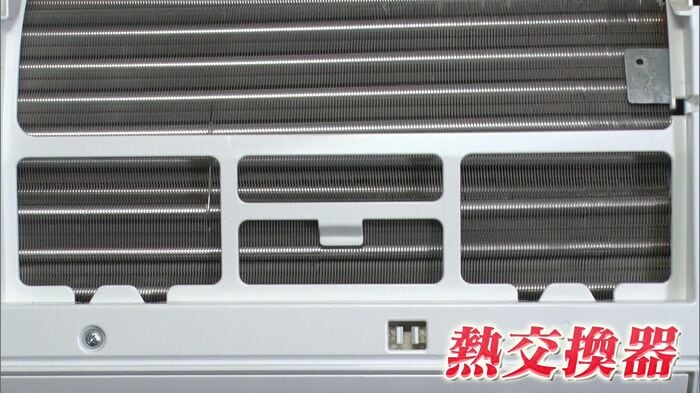 「熱交換器」とは、取り込んだ部屋の空気を冷やしたり温めたりするエアコンの心臓部。