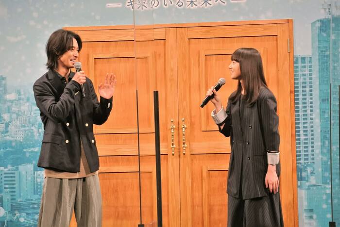 出演のオファーをうけた時の心境を問われると、山﨑は「『夏への扉』というタイトルを聞いた時に『どういうこと?季節に扉ってあるの?』って思ったんですけど、でも、SFだとお聞きし、SF好きということもあって楽しみにしていました」と回顧。