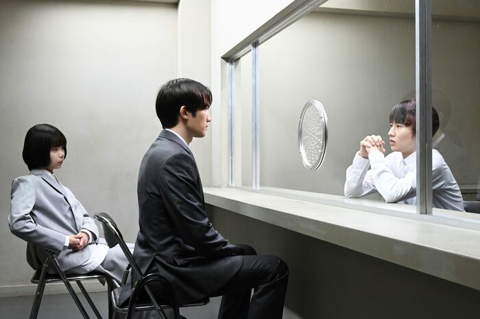 法廷のシーンです。役の感情のつながりもあって、「法廷のシーンをすべて通してやってみるのはどうでしょう」と提案させていただいたのですが、趣里さん、ジェシーさん、石野さん、スタッフさん、現場のみなさんが提案を受け入れてくださり、そのアプローチで演じさせていただくことができました。