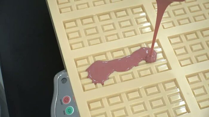 バレンタインに向け、ガーナチームが総力をあげて取り組んでいたのが、いちごパウダーを入れた新商品、ガーナピンクチョコレートの開発。何度も配合を変え、半年前から試作を重ねてきた。