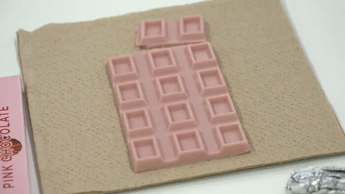 バレンタインに向けた新商品「ガーナピンクチョコレート」は、所長からの指摘を受け、一からベースの配合を変えてミルク感を調整した。