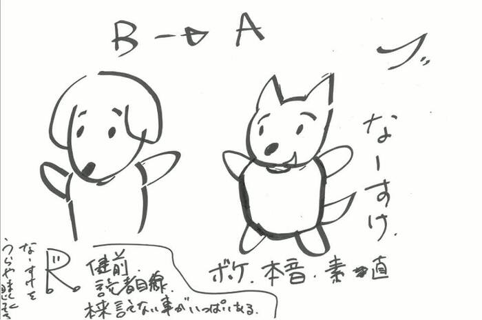 Rくんは軽ーい気持ちで作ったキャラクターで、「本音」と「建て前」の「建て前」の部分を象徴していて、彼にいろいろ背負わせてみようと思っています(笑)。一方で、なーすけというキャラクターは自分の気持ちに素直で、本当
