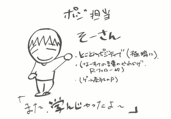 最後に(自身の親友からインスパイアされた)そーさんという大オチキャラが登場します。実は本人には言ってなくて、勝手にいつもの呼び名そーさんを使ってしまって申し訳ないので、メディアを通して謝罪したいです(笑)。僕の人生にとって必要不可欠な方で、僕の考え方や性格に影響を与えてくれている方。マンガ的に脚色はしていますが、彼のポジティブな価値観を皆さんにお届けしたいなとインスパイアされたキャラクターを作りました。