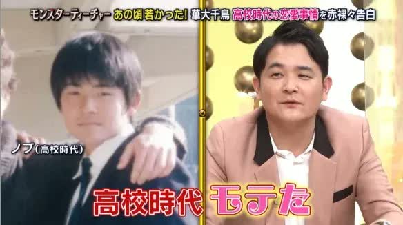 一方、バレンタインデーのときに列ができていたほどモテていたというノブ。「モテていたし、ちょっと男前って言われてたんですけど、吉本入ってお笑いやりだしてから、どんどん(おでことアゴが)“めくれて”きたんですよ」と自虐的に笑った。