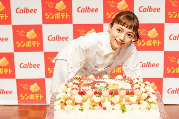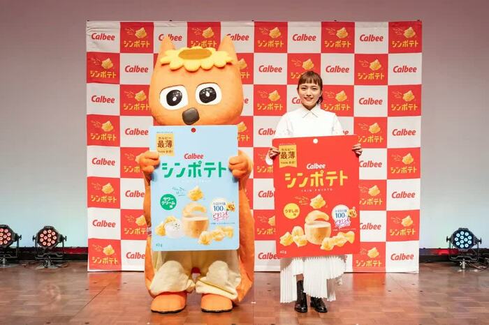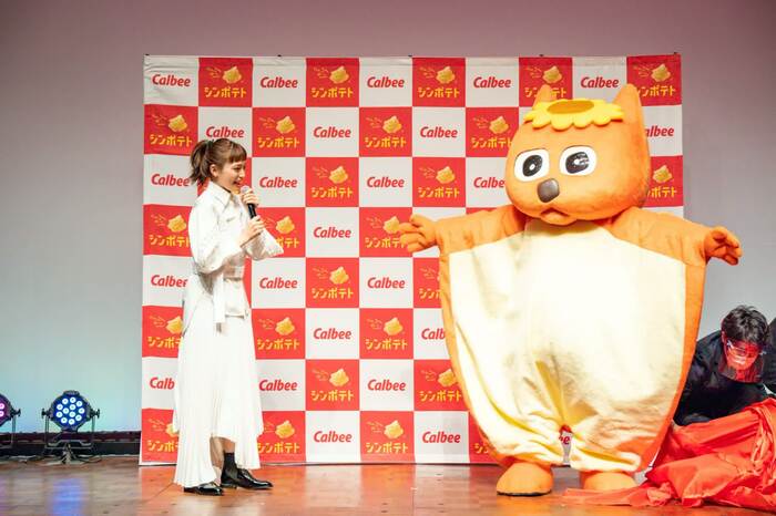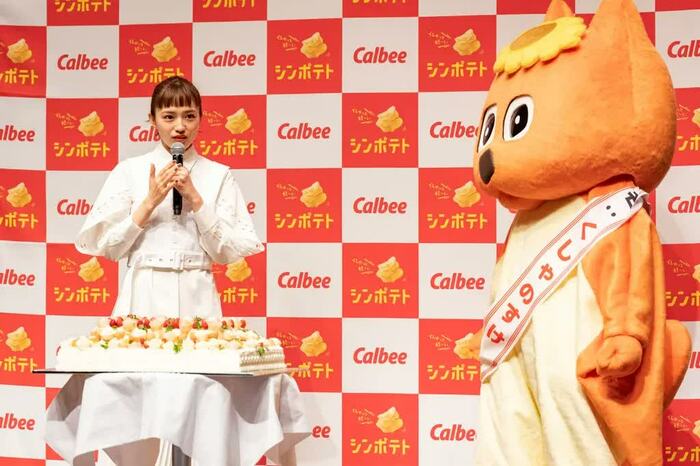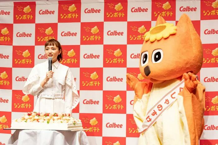 2月9日(火)、カルビ―株式会社の「シンポテト発売1周年記念 新キャラクターお披露目会」がオンラインで行われ、ゲストとしてイメージキャラクターを務める川口春奈が出席した。
