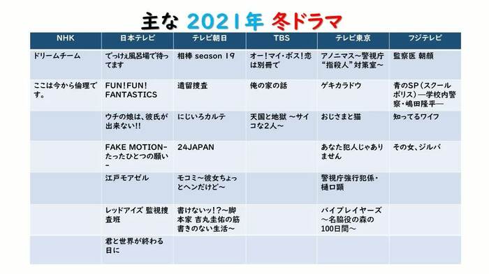 恋愛ドラマも数多く、まだまだ注目作が並ぶ今クール。後編は、2月13日(土)に放送。