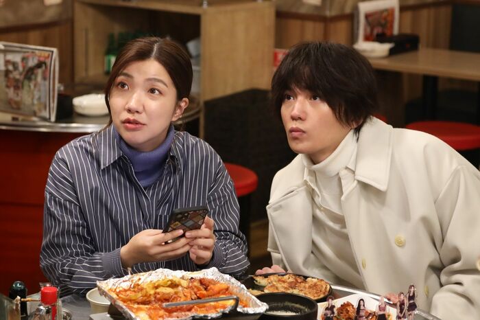 幽霊の山田クソ男(八木勇征)と幽霊の先輩・龍二(宇梶剛士)が見つめる中、綾子と5人のフリートークが始まる。モテモテ状態に浮かれる綾子は、果たして誰を選ぶのか…?