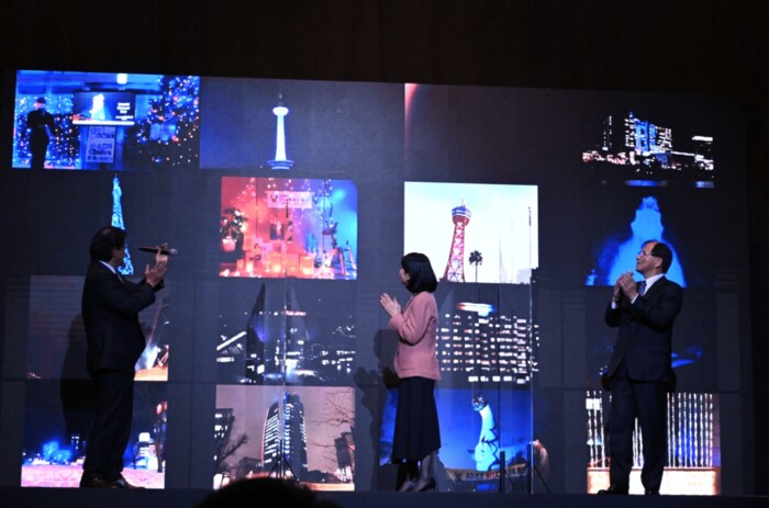 その吉永が見守る中、北海道、宮城県、新潟県、富山県、東京都、神奈川県、愛知県、岐阜県、京都府、大阪府、三重県、島根県、福岡県の13都道府県、16ヵ所でライトアップ。フジテレビを含む各所をUICCカラーであるブルーとオレンジで彩った。
