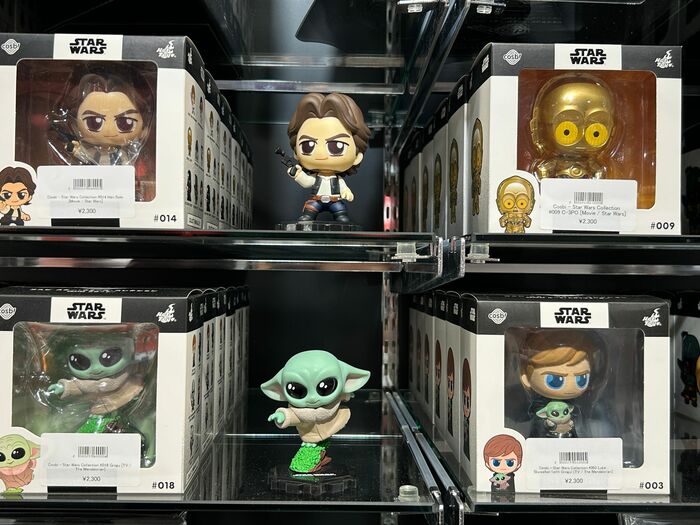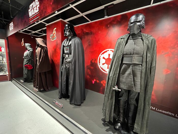 ダース・ベイダー、アナキン・スカイウォーカー、ダース・シディアス、カイロ・レンという世代や作品の垣根を越えて集まっていて、間近で見られます。