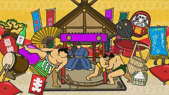 水戸泉の大量塩まき、高見盛の“ロボコップ”、朝青龍のカメラ目線でまわしをポン!…など土俵を沸かせた名パフォーマンス。さらに、くまモン、キン肉マン、北斗の拳…知れば知るほど面白い「化粧まわし」の映像も。