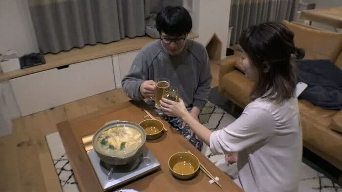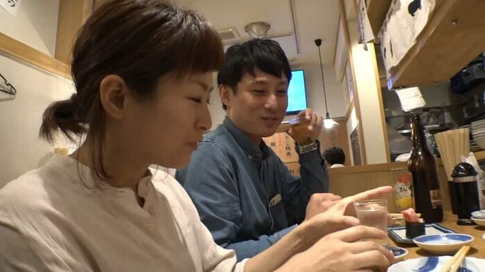 佑介さんとともに仕事が休みの日曜日の昼食時、2人が向かったのは行列ができる人気店「すし酒場 さしす」。この店を選んだわけは、メニューの値段の安さにあった。「安くて美味しいところを探している」と言い、「休みの日にお昼から飲めるのが幸せ」と笑顔を見せた。