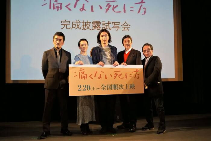 2月2日(火)、映画「痛くない死に方」の完成披露舞台挨拶が行われ、柄本佑、坂井真紀、宇崎竜童、奥田瑛二、高橋伴明監督が登壇した。