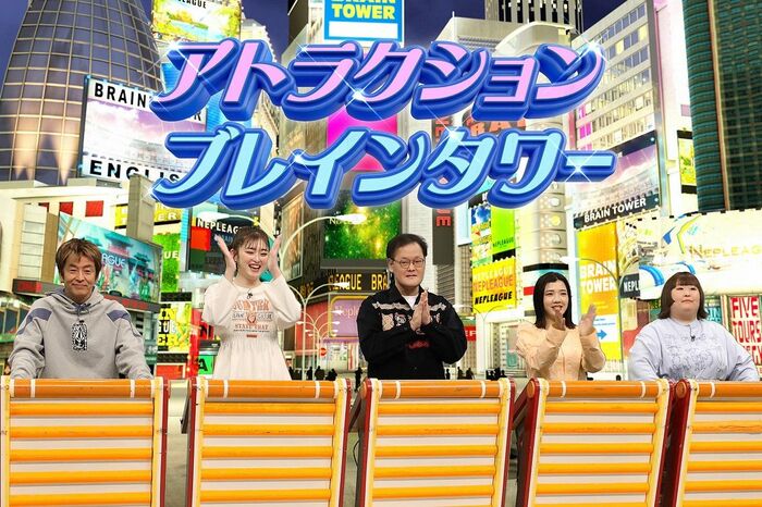 1stステージは、ディズニーでおなじみのキャラクター名やアトラクション名を解答する「ブレインタワー」、2ndステージは、ディズニークイズを1人1文字ずつ答えて、5人で5文字の解答を導き出す「ハイパーファイブリーグ」に挑戦。