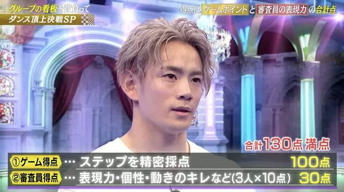 次なる挑戦者は、ダンス歴26年の加藤諒だ。得意とする手の動きを存分に織り込みながら、要所要所でキメ顔を披露しスタジオを盛り上げたが、ゲームスコアは88.726点、審査員得点も23点で総合得点は111.726点となった。