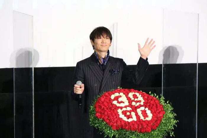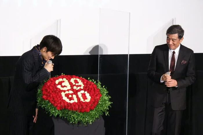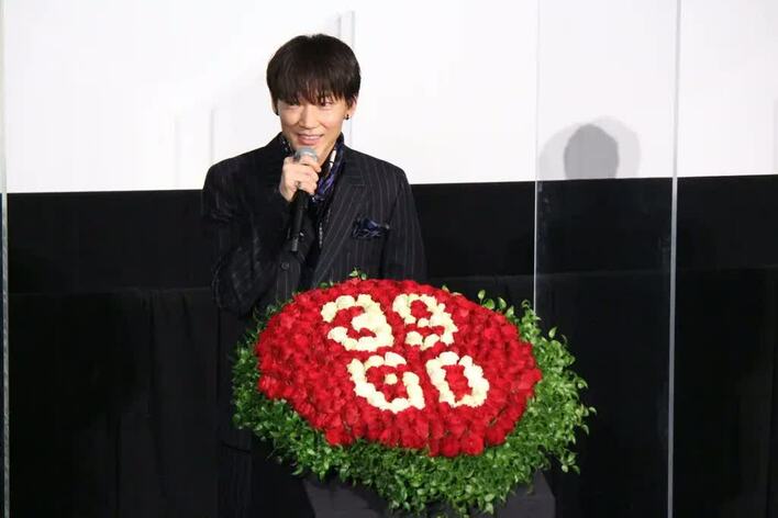 先日26日に39歳の誕生日を迎えた綾野。イベントではそんな綾野にサプライズで大きな花束が贈られる場面が。