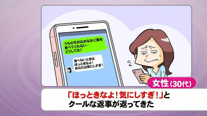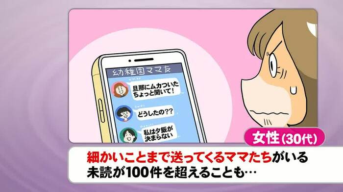 「コロナ禍…悩みごと、どう解消?」というテーマでは、コロナ禍でママ友に会えなくなった女性のお悩みが登場。内容は「リアルで会えなくなった分、グループLINEが活発になりすぎて煩わしい」「ママ友にLINEで悩み事を相談したら、クールな返事で棘(とげ)があるように感じた」(ともに30代女性)というものだ。
