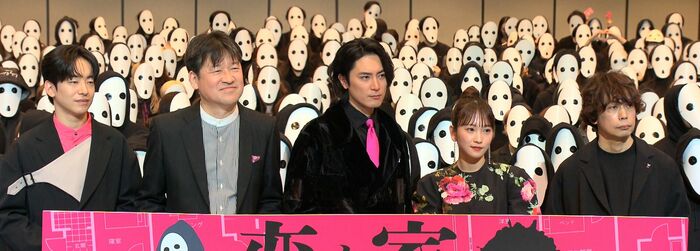 間宮祥太朗さんと佐藤二朗さんが2月12日、W主演を務める映画「変な家」の“変な報告会”に、共演の川栄李奈さん、DJ 松永さん(Creepy nuts)、石川淳一監督とともに出席しました。