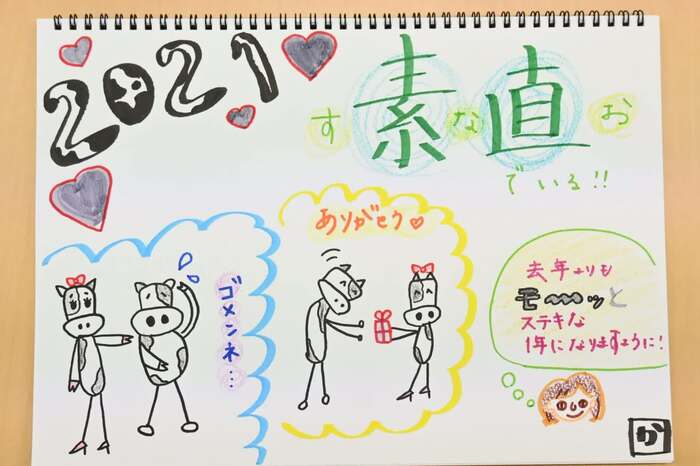 ――今年のテーマである「素直」も書かれています。今年のテーマは、ふたつあるとのこと(ページ下のメッセージ動画参照)ですが…?