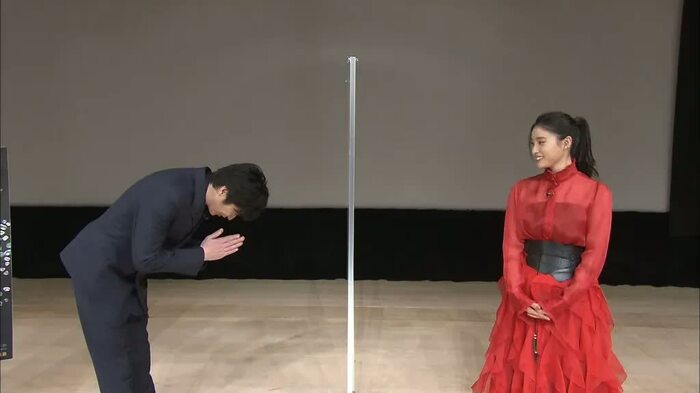 また、田中は撮影の日の朝、土屋に会うと「『おはよ~』と言った後、絶対こうやって拝んでた」そうで、ここでも手を合わせて一礼し当時を再現。