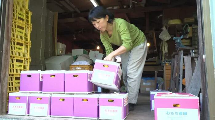 ハガキには、好みに沿った要望だけでなく、ちょっとした言葉が添えられていることも。「孫たちに安全で美味しい果物を食べてもらえること、バーバの喜びです。娘宅への配達をお願いします」というメッセージを読み上げ、「こういうの読むと、すごくうれしいですね」と微笑んだ。