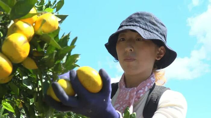 両親と3人でこの農園を管理する彼女が、収穫の際に心がけているのが、ヘタのギリギリのところで摘み取るということ。残った枝部分が長いと実に刺さってしまい、その傷から傷みはじめ、さらに他のみかんにも傷みが移るのだという。