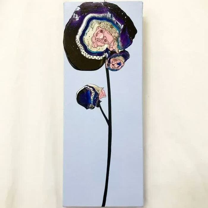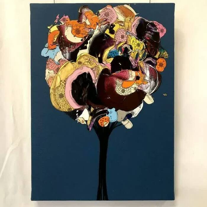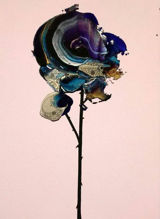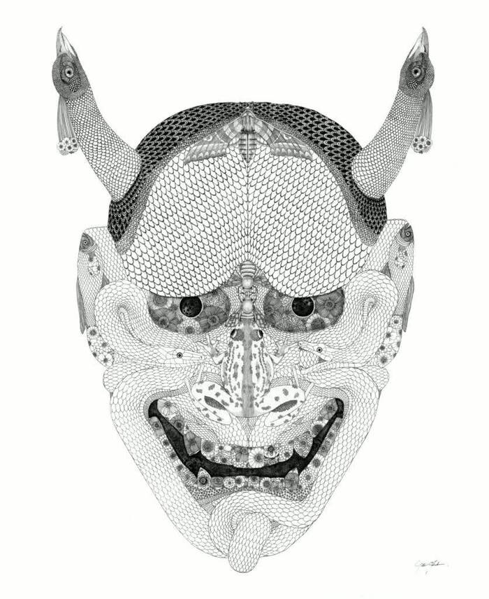 無意識で描きたい題材は、常に花や生きもので、そこから美と醜、愛と嫉妬、生と死など相反する二つのテーマを1枚の中に表現しています。モチーフは常に生きものたちで『beautiful foodchain』をコンセプトに、自然の摂理の美しさを描いています。