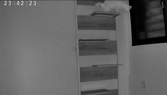 深夜のペットカメラに映っているのは、暗闇の中 目を光らせるきいちゃん。