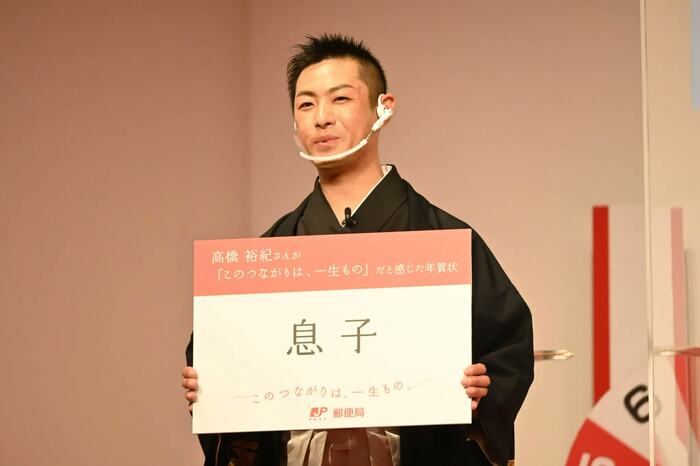 高橋は「息子から鉛筆で書かれた年賀状が届いて、裏を見たら息子の名前と家族5人の絵が描かれていました。まさか息子から年賀状をもらうとは思ってなかったので、感動しました。ずっと家に取っておきたいと思います」と、心温まるエピソードを話した。