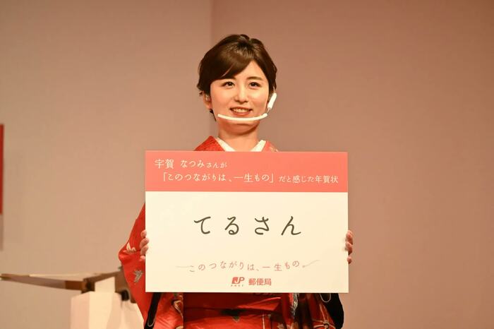 宇賀は、アナウンサーになって、最初に担当した仕事の上司「てるさん」を紹介。「そこから10年以上経ちますが、いまだに一言、二言メッセージが書かれた写真年賀状を送ってくださるんです。会社や番組を離れてもこうやってつながっていられることに感謝しています」とつながりを明かすと、「てるさん、宇賀は元気でやっております」とメッセージを送った。