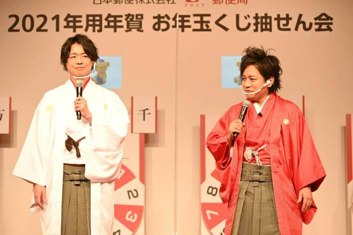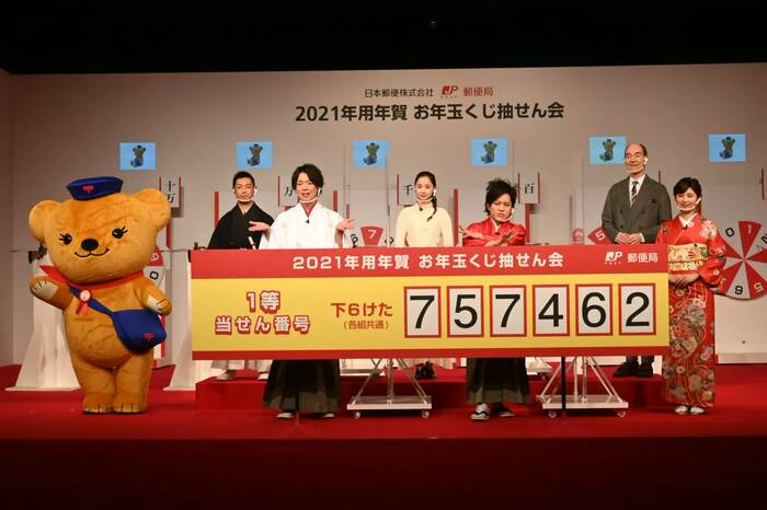 1月17日(日)、「2021年用年賀お年玉くじ抽せん会」が行われ、ゲストにお笑いコンビのぺこぱ(松陰寺太勇、シュウペイ)、女優の堀田真由、フリーアナウンサーの宇賀なつみ、日本文学者のロバート・キャンベル、オートバイレースライダーの高橋裕紀が登壇した。