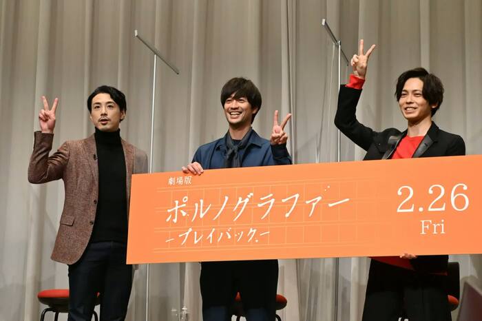 1月16日(土)、映画「劇場版ポルノグラファー~プレイバック~」映画化記念イベントが行われ、竹財輝之助、猪塚健太、吉田宗洋、三木康一郎監督が出席した。