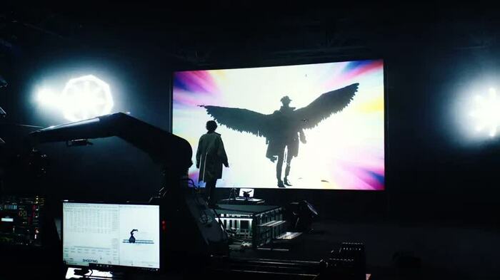 一発撮りを行った感想を、「(スクリーンの)花に触れようとすると音が出て、パーンとはじけて驚きました。その後、色々なものが合わさっていったときにスタジオで鳴っていた音楽が高まっていることに加え、ドローンも上がってきて、なにがなんだかわからなくなって『うわぁ!』となっちゃったのが印象的でした」と振り返った。